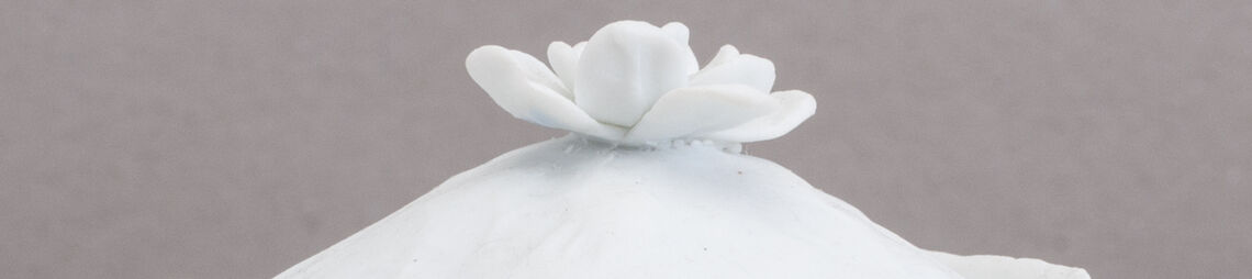 ''Thoughtfulness is evident in the way I handle clay and necessary when viewing or handling my work. The methods I employ while constructing are integral to the final presentation of my work. I skillfully employ basic, traditional methods of hand building to emphasize the scope of possibility within the medium. The repetitive nature of pinching and coiling, allow for meditation during creation. By making objects out of a fragile and precious material, I expect the delicate nature of the work to provoke a heightened awareness and sensitivity on the part of the viewer.'' Bathe works with high-fire porcelain mixed with paper clay. The tints of purple and blue within her work are the result of thin layers of glaze applied to the inside of each form combined with the natural atmosphere of reduction firing.